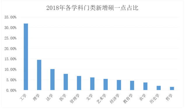 本次增列,工学门类新增硕士学位一级学科授权点占比最高,增列了397个,占新增硕士点总数31.96%。其次是理学181个,占比14.57%。