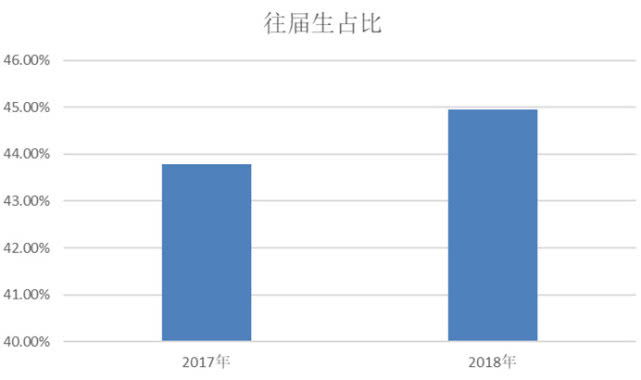 同时,2018年往届生占比达到45%,接近半数,非全日制招生纳入统考之后,往届生占比进一步扩大。