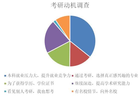 根据考研动机调查显示,考生在报考研究生时,首要动机为就业压力大,提高就业竞争力,占比36%;其次是继续深造,提高学术研究能力,占比21%;第三是为了获得学历、学位证书,占比17%。