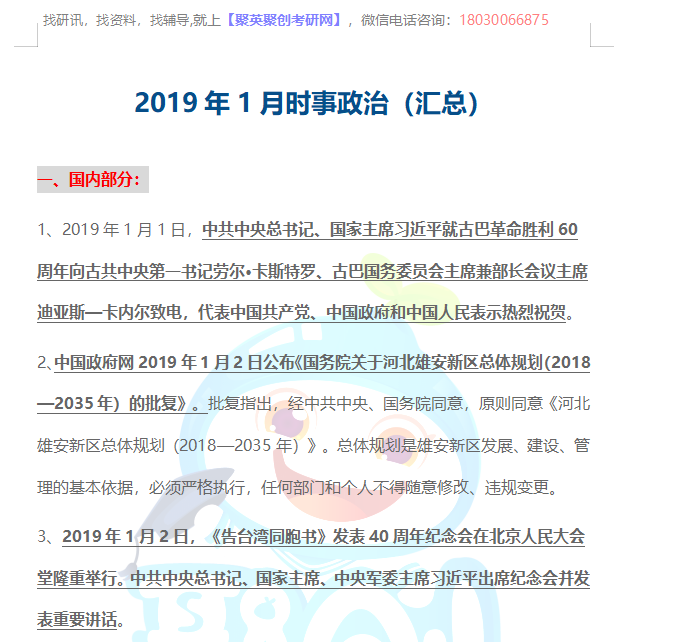 完整版附件下载:2020考研:2019年1月时事政治(汇总)