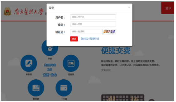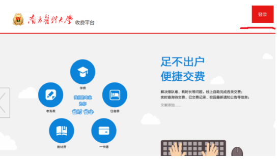 第一步:打开链接,进入我校自主缴费系统首页,点击右上角登录。