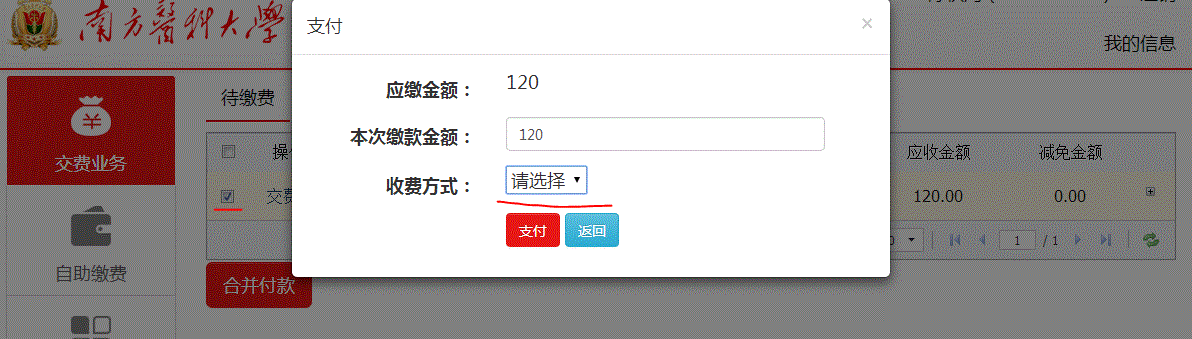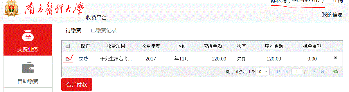 缴费流程:登陆南方医科大学自主缴费系统(http://sfzx.fimmu.com:8804/index.html);选择缴费方式( 支付宝、微信);支付报名费;打印缴费记录截图,写上报名号及姓名在现场确认时上交 (具体详见通知末端图片展示)。