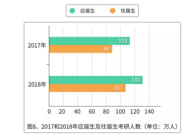 人。从数据可知,2017年,往届生考研人数占全国报考人数的43.8%,2018年,往届生考研人数占全国报考人数的45%,同比上升了1.2%。