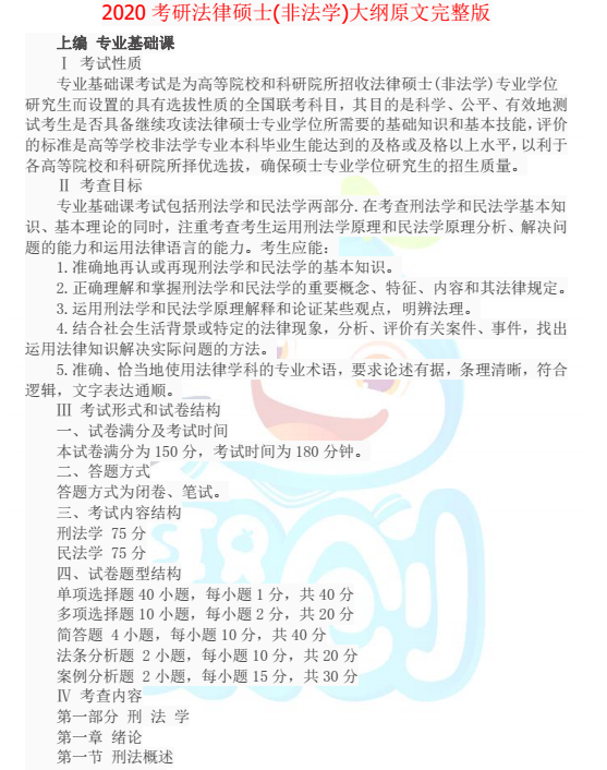 以上是聚创考研网为考生整理的"2020年考研法律硕士(非法学)大纲原文内容"的相关考研信息,希望对大家考研备考有所帮助! 备考过程中如有疑问,也可以添加老师微信juchuang911进行咨询。