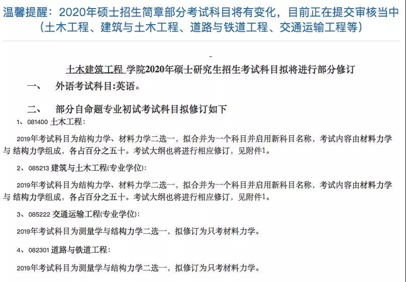 081400 土木工程 & 085213 建筑与土木工程(专业学位):考试内容改由材料力学与结构力学组成,各占百分之五十。