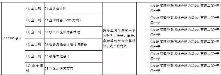 复试科目:政治理论、会计专业综合(财务会计、成本管理会计、财务管理、审计)、综合面试(专业素质、综合素质、英语听说能力)、同等学力加试科目(宏观经济学、微观经济学、管理学原理)。