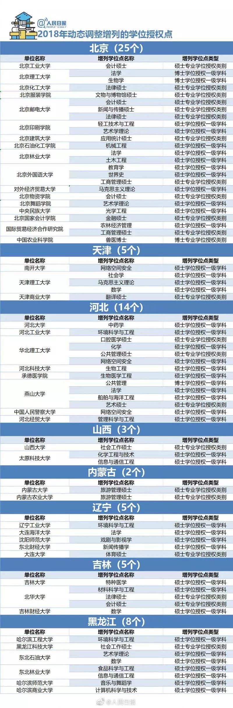 今年5月份,教育部公布了《2018年动态调整撤销和增列的学位授权点名单》,共有28个省份的147所高校或单位增列了218个学位点(其中199个硕士学位点,19个博士学位点)。聚创考研信息网小编整理了一些内容,以供大家参考~