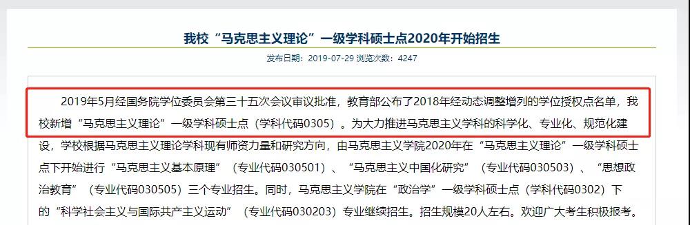 PS:招生信息在学校的研究生官网里面能查到。现在部分高校已经公布最新的20考研招生简章和专业目录,比如对外经济贸易大学新增马克思主义理论一级学科。