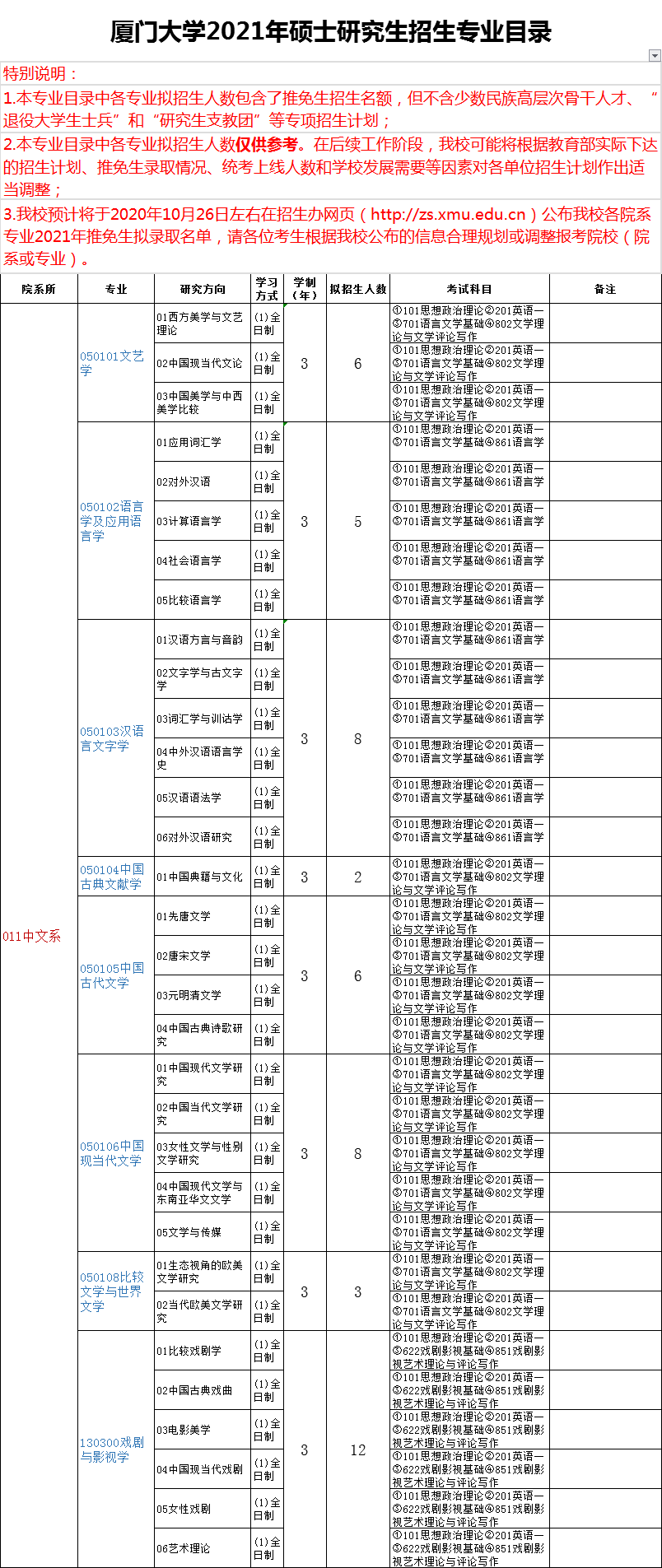 据悉,2021厦门大学硕士研究生招生目录及招生计划已公布!具体内容如下: