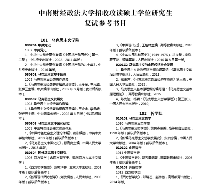 完整版内容请查看附件:2019年中南财经政法大学各学院硕士研究生参考书目
