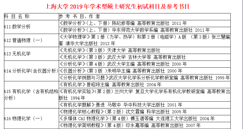 以上是聚创考研网为考生整理的"上海大学2019年学术型硕士研究生初试科目及参考书目"的相关考研信息,希望对大家考研备考有所帮助!