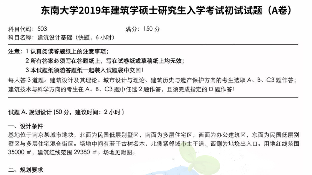 2019年东南大学503建筑设计基础考研真题回忆版