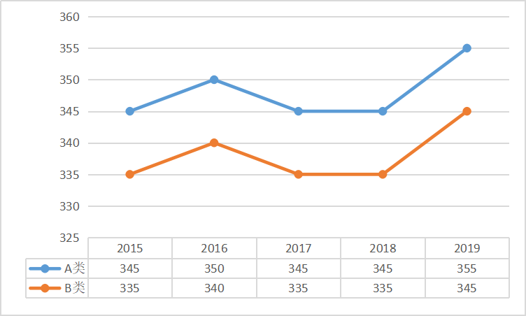 2015-2019年文学总分国家线趋势图及单科复试分数