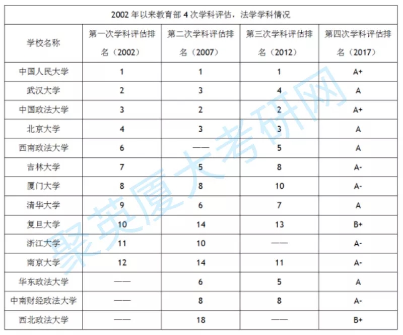 我们可以根据历次学科评估,给国内部分高校的法学学科评价如下: