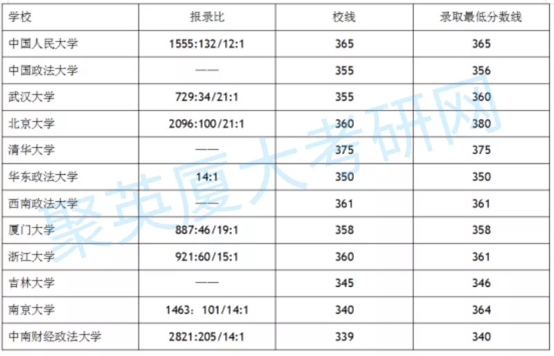 我们以全国统考的法硕(全日制非法学)招考情况来对比上述12所高校: