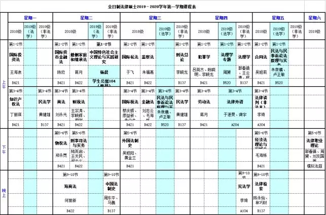 2)法律硕士课表