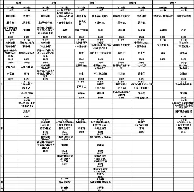 1)法学硕士的课表